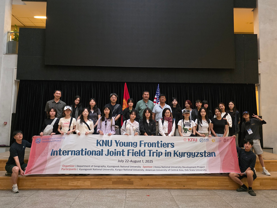 From July 23 to July 31, 2025, the International Summer School organized by Kyungpook National University (Korea) jointly with a number of local universities, such as AUCA, KNU and Osh State University, on the theme “KNU Young Frontiers” was held in Bishkek, Issyk-Kul and Osh. Professor Cholponbek Ormukov, Head of the Department of Environmental Sustainability and Climate Science, and professor Murataly Duishonakunov, Department of General Education Programs, participated in this summer school from AUCA. Students Jumasheva Nestana and Mederova Darika from the ESCS program also took participated. The main topic of the event was climate change, geohazards, rational use of water resources, development of intercultural relations and socio-economic development of communities in Kyrgyzstan. The summer school program was aimed at familiarizing international and local students with the above-mentioned issues of the region, as well as developing their independent research skills in close interaction with professors and peers. The school participants studied natural risks, changes in the state of glaciers and reservoirs, as well as water supply issues for drinking needs and irrigation. The school included field trips to high mountain regions and lowland agricultural lands, including farm fields and rural communities. This allowed the participants to get acquainted with the consequences of climate change and their impact on the daily life of the local population on the spot. In addition, the results of research conducted in these regions were presented, which contributed to an in-depth scientific discussion and knowledge exchange between the participants. Particular attention was paid to intercultural interaction and academic exchange during the school. One of the key goals of the event was to strengthen cooperation between universities, exchange experiences and create a platform for future joint projects and research. The international summer school was an important step in the development of environmental education, training of young specialists and the formation of an international network of researchers interested in the sustainable development of the region. Participation in such programs contributes not only to the scientific growth of students, but also to the formation of a responsible attitude to global environmental and socio-economic challenges.