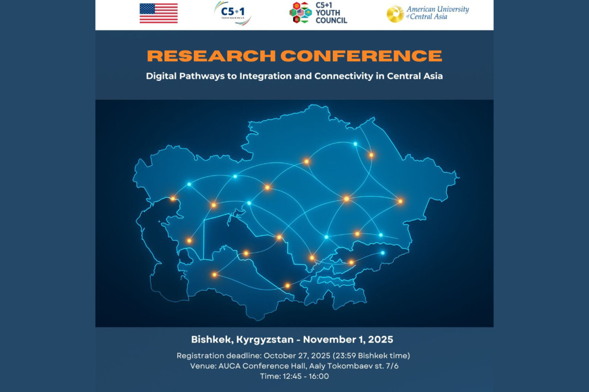 C5+1 Youth Council (YC) will host the Research Conference: Digital Pathways to Integration and Connectivity in Central Asia, where alumni of C5+1 YC will present their research aimed at raising awareness and proposing viable policies to foster collaboration among young entrepreneurs, civil society organizations, and governments in Central Asian countries by leveraging cross-border digital infrastructure and enhancing regional cooperation.