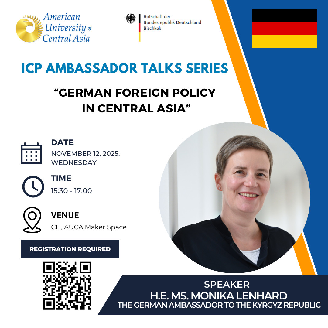 The ICP Department is pleased to invite you to the Ambassador Talks with H.E. Ms. Monika LENHARD, the Ambassador of Germany to the Kyrgyz Republic,