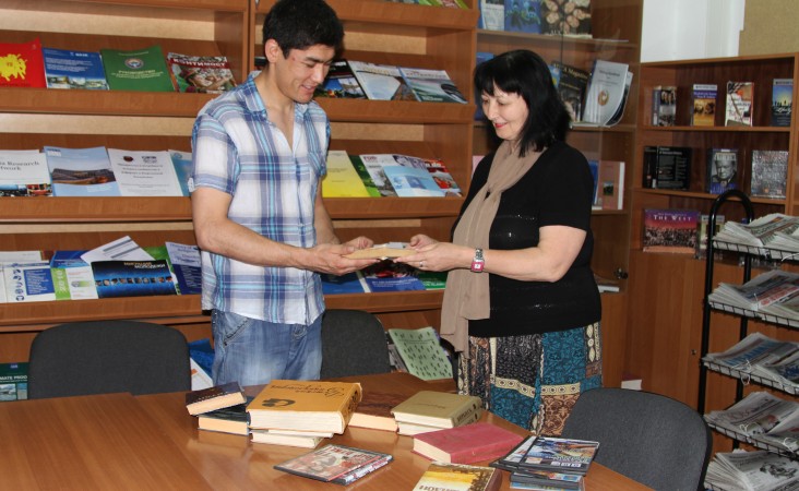On June 28, 2013, Isken Baibosunov, the director of the “Orphans Protection and Support” center, collected 151 books and 14 DVDs from AUCA Library, which will be distributed to orphanages in Issyk Kul.