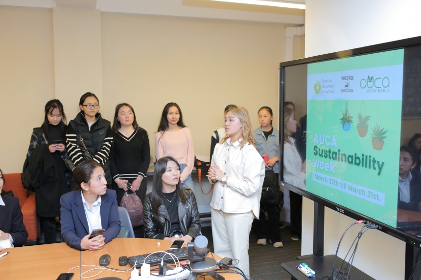 Гостей поприветствовала исполнительный директор Центра гражданской активности АУЦА Нуржамал Карамолдоева. Она рассказала о программе Green AUCA, уже год реализующаяся в университете, и о мероприятиях, которые пройдут в рамках «Зеленного месяца».