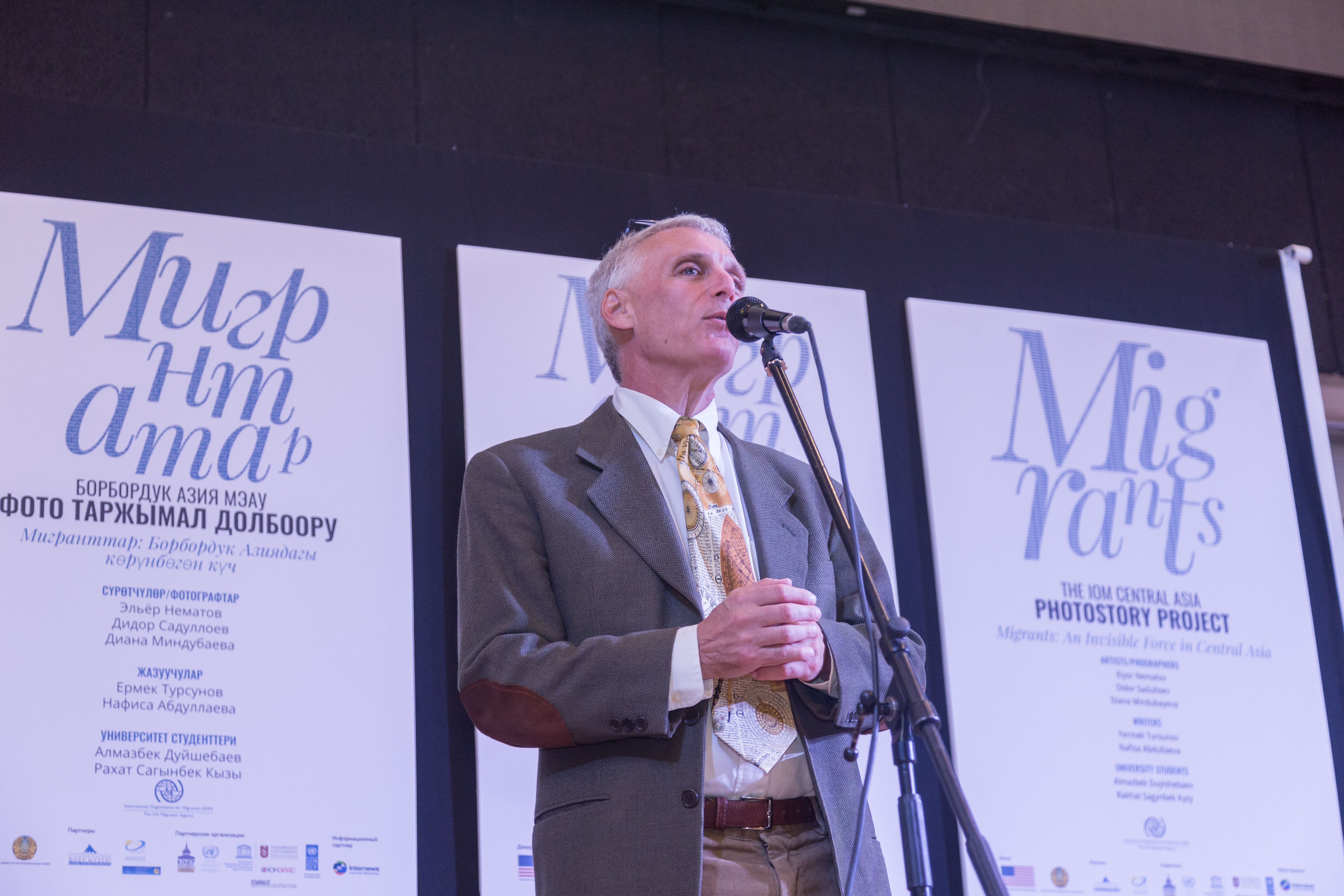The exhibition was opened by the president of the AUCA Andrew Wachtel, the Head of the IOM office in Almaty/ Deputy Regional Coordinator for Central Asia - Tatyana Hadjiemmanuel, Deputy Chairman of the State Migration Service under the Government of the Kyrgyz Republic Almazbek Asanbayev, representatives of the Embassies of different countries and others.