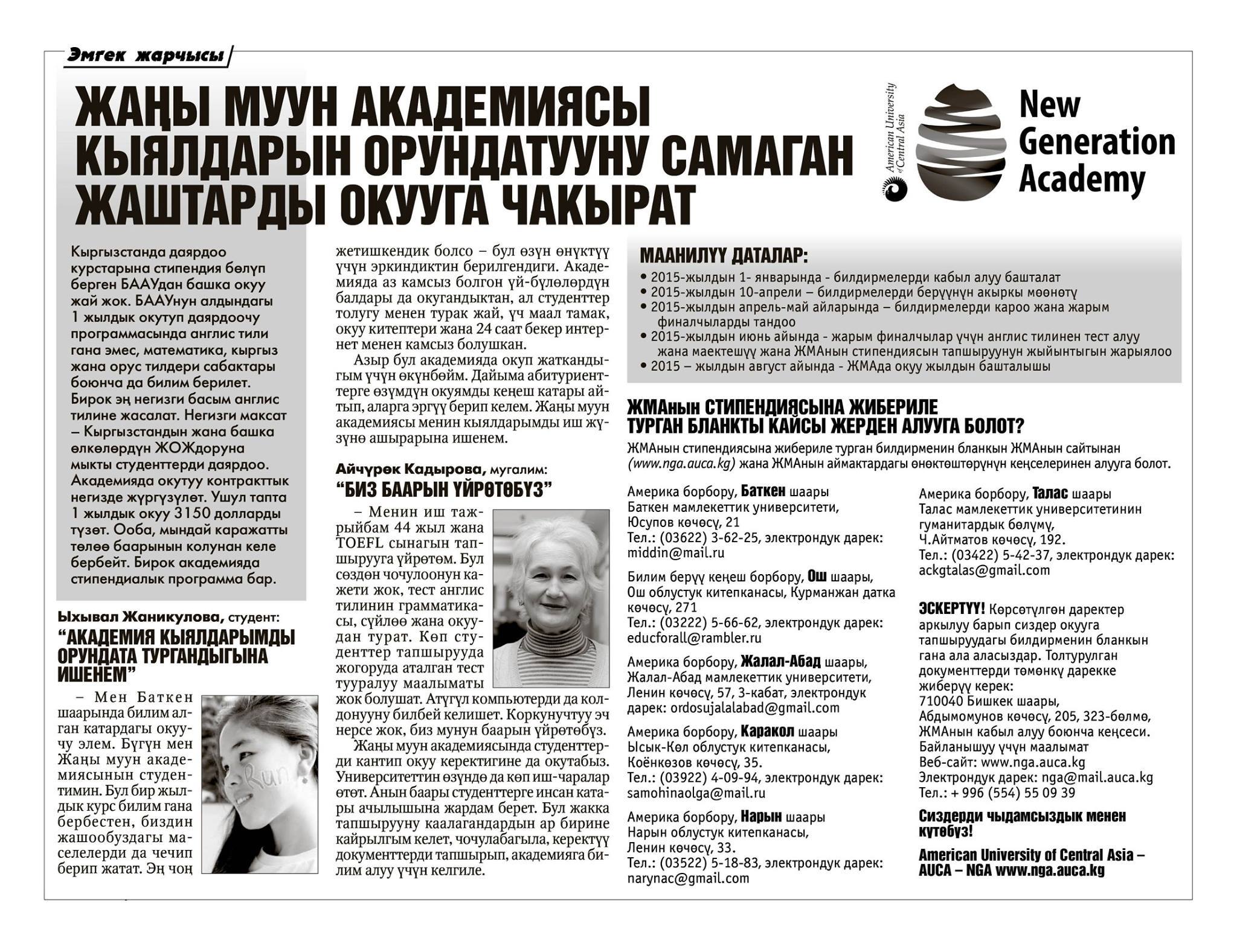 Жаны муун Академиясы кыялдарын орундатууну самаган жаштарды окууга чакырат