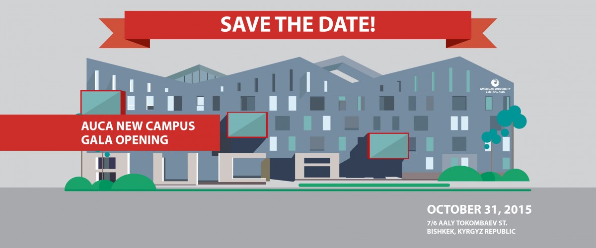 Борбордук Азиядагы Америка университети 2015-жылдын 31-октябрында жаңы кампустун салтанаттуу ачылыш аземине чакырат. Чөлкөмдүн алдыңкы жана туруктуу университеттик кампустун курулуп бүтүшүн биз менен чогуу майрамдаганга келиңиз!