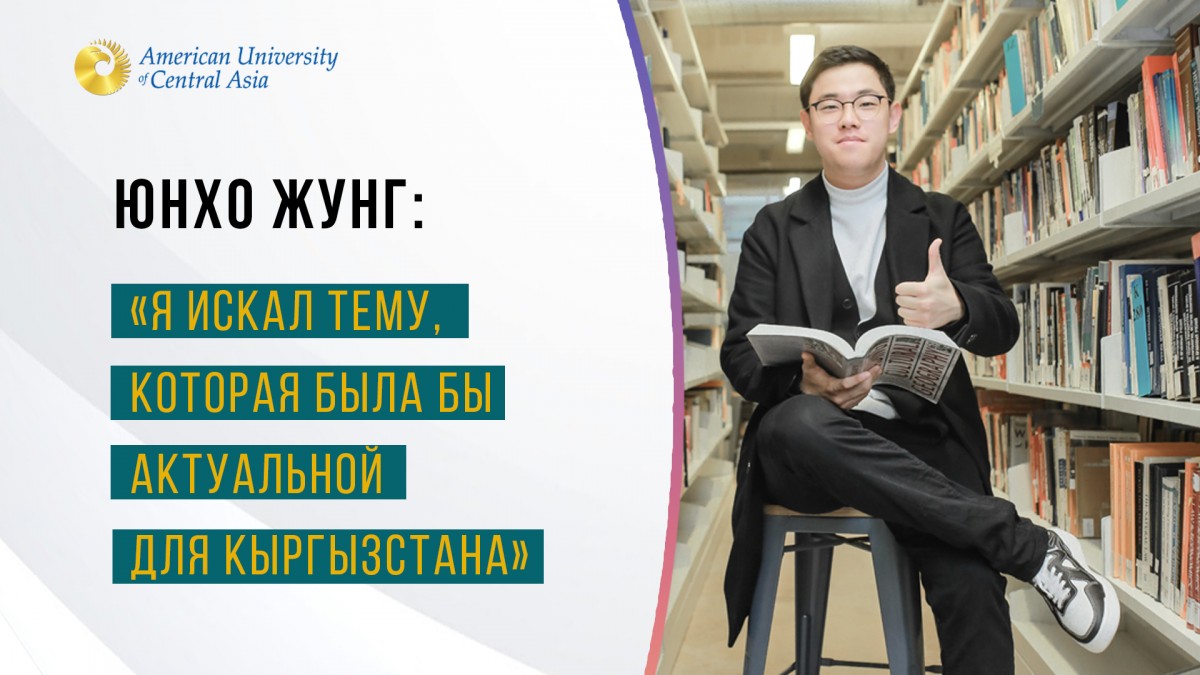 Юнхо Жунг – Түштүк Кореядан болот, быйыл “Колдонмо геология” факультетин аяктап жатат. Анын дипломдук иши “Бишкектин тургундарынын жашоосуна таштандылардын полигонунун таасирин иликтөө үчүн аралыктан туруп зонддоо жана жердеги ыкмаларды пайдалануу” деп аталып, шаардык таштандылар полигонунун көйгөйлөрүнө арналган. Биз Юнхого өзүнүн дипломдук иши жана университетти аяктагандан кийинки пландары тууралуу сурап кайрылдык.