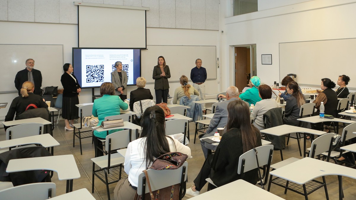 Өткөрүлгөн сабактардын темасы - “Математиканы өнүктүрүү жөнүндө. Кыргызча ыкма”. БААУнун “Колдонмо математика жана информатика” факультетинин профессору мугалимдерге математиканын Борбордук Азияда орто кылымдарда өнүгүүсү тууралуу айтып берди.