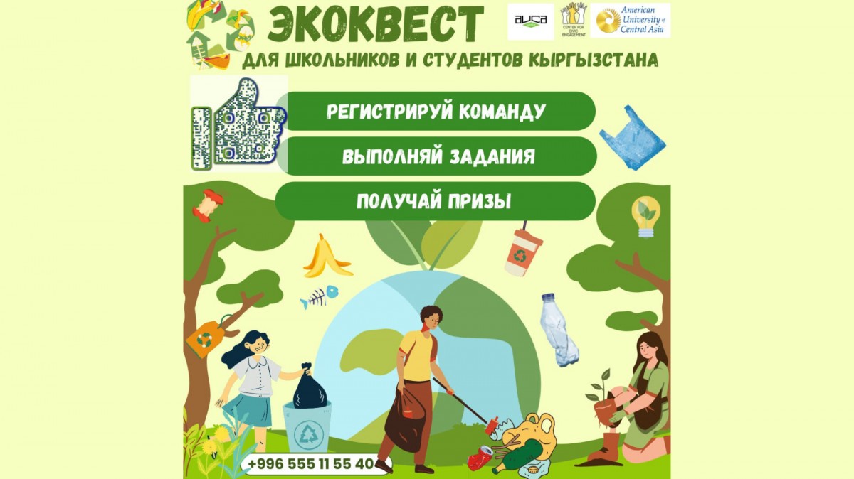 Биздин квестке катышкыла - тапшырмаларды аткаргыла - биз менен бирге келечектин эң бир суроо-талапка ээ болгон кесипкөйлүк ыкмаларынын бири болгон экологиялык ой-жүгүртүүнү өнүктүргүлө, өз ЖОЖуңузда же мектебиңизде лидерлердин бири болуп, Кыргызстандын экология тармагында актуалдуу көйгөйлөрүн чечүүгө жардам бериңиз!