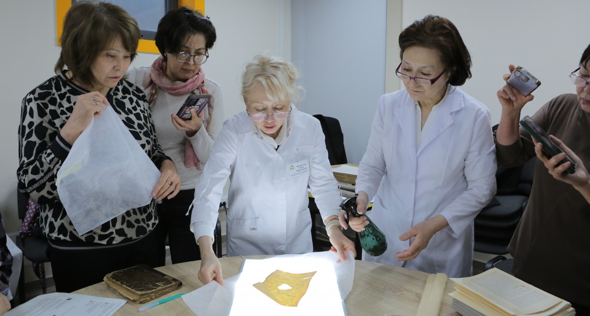 Белгилеп кетчү нерсе, Казакстан Республикасынын Улуттук китепканасынын консервациялоо, реставрациялоо жана мукабалоо кызматы китепканалар ассоциациясынын Эл аралык федерациясынын (IFLA/PAC) консервациялоо жана реставрациялоо боюнча аймактык борбору болуп эсептелет. Кызмат ар кайсы мезгилдерге таандык документтер менен китептерди, ошондой эле сейрек фонддорду сактоо боюнча чоң тажрыйбага ээ. Кызматтын түзүмүндө жазма документтерди консервациялоо жана реставрациялоо боюнча мектеп бар. Кызматтын жетекчиси Аида Шоманованын айтымында, мектепте окуу курсу 2 аптага созулуп, анын аягында угуучуларга сертификаттар берилет. Орун алган семинар - бул документтерди сактоо жана калыбына келтирүүнүн үстүндө иштөө үчүн баштапкы ыкмалар.