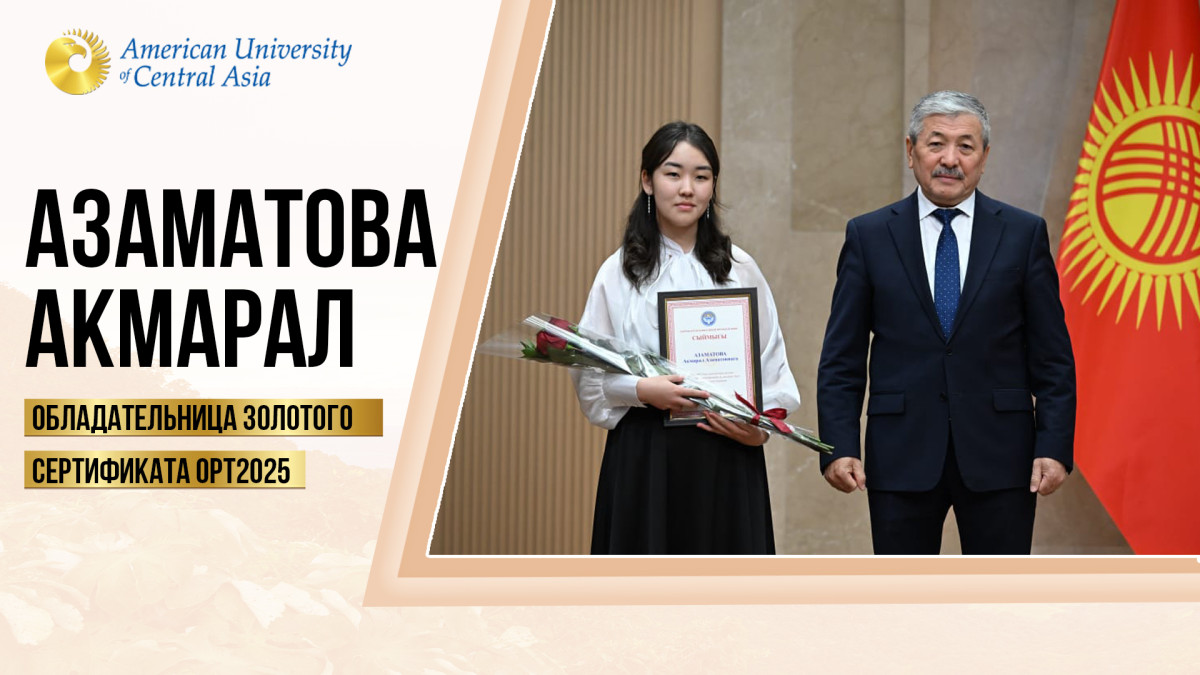Нарын облусунун Кочкор районунун бүтүрүүчүсү Азаматова Акмарал Жалпы республикалык тестирлөөдө 232 упай чогултуп, Алтын сертификатка ээ болгон. Жетишилген ийгиликтери ага БААУга жол ачып, ал Software Engineering факультетине тапшырды. БААУда билим алуу анын кыялы болчу. Андыктан Акмарал ийгилик сыры жана келечекке пландары менен бөлүштү.