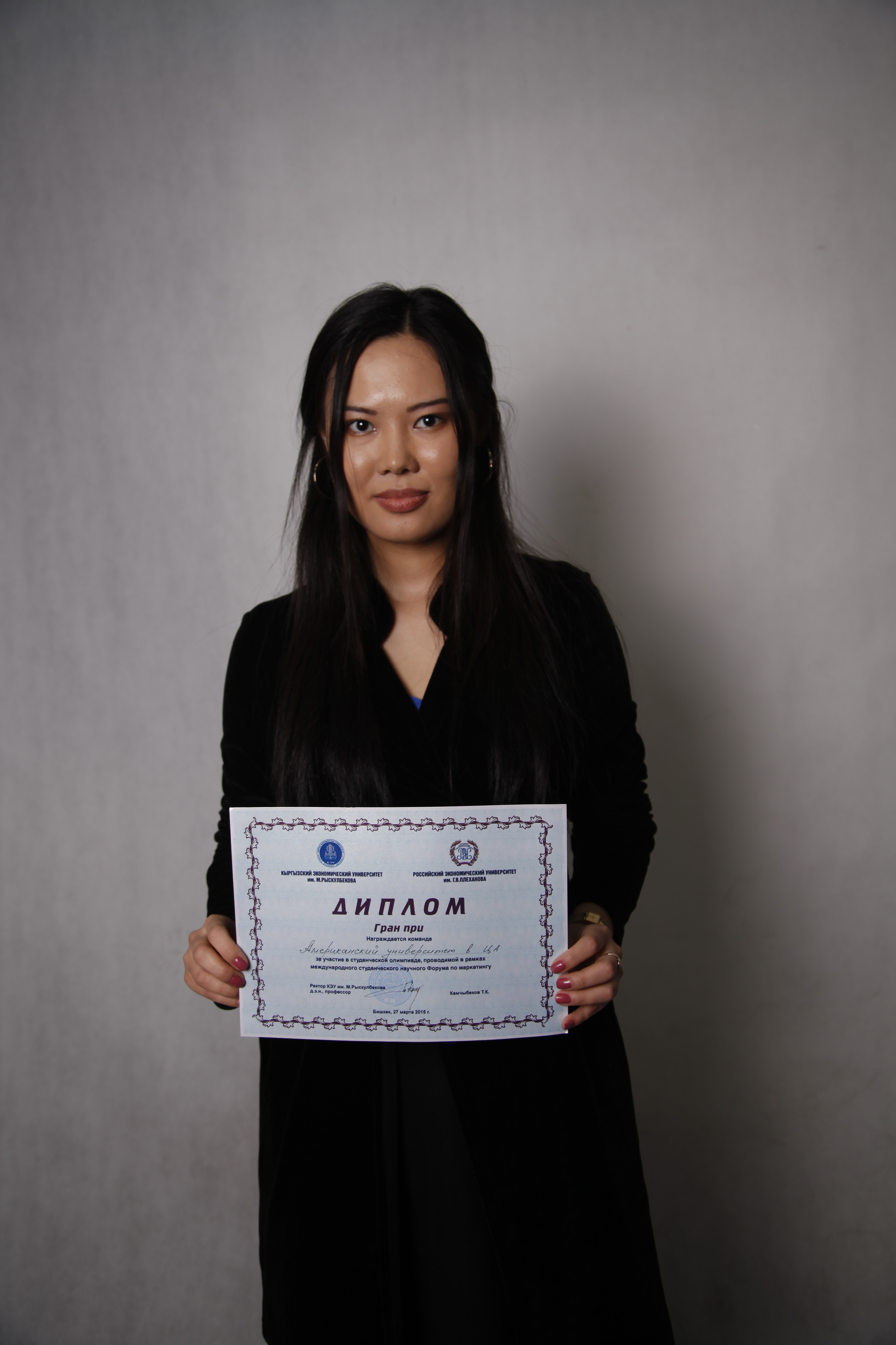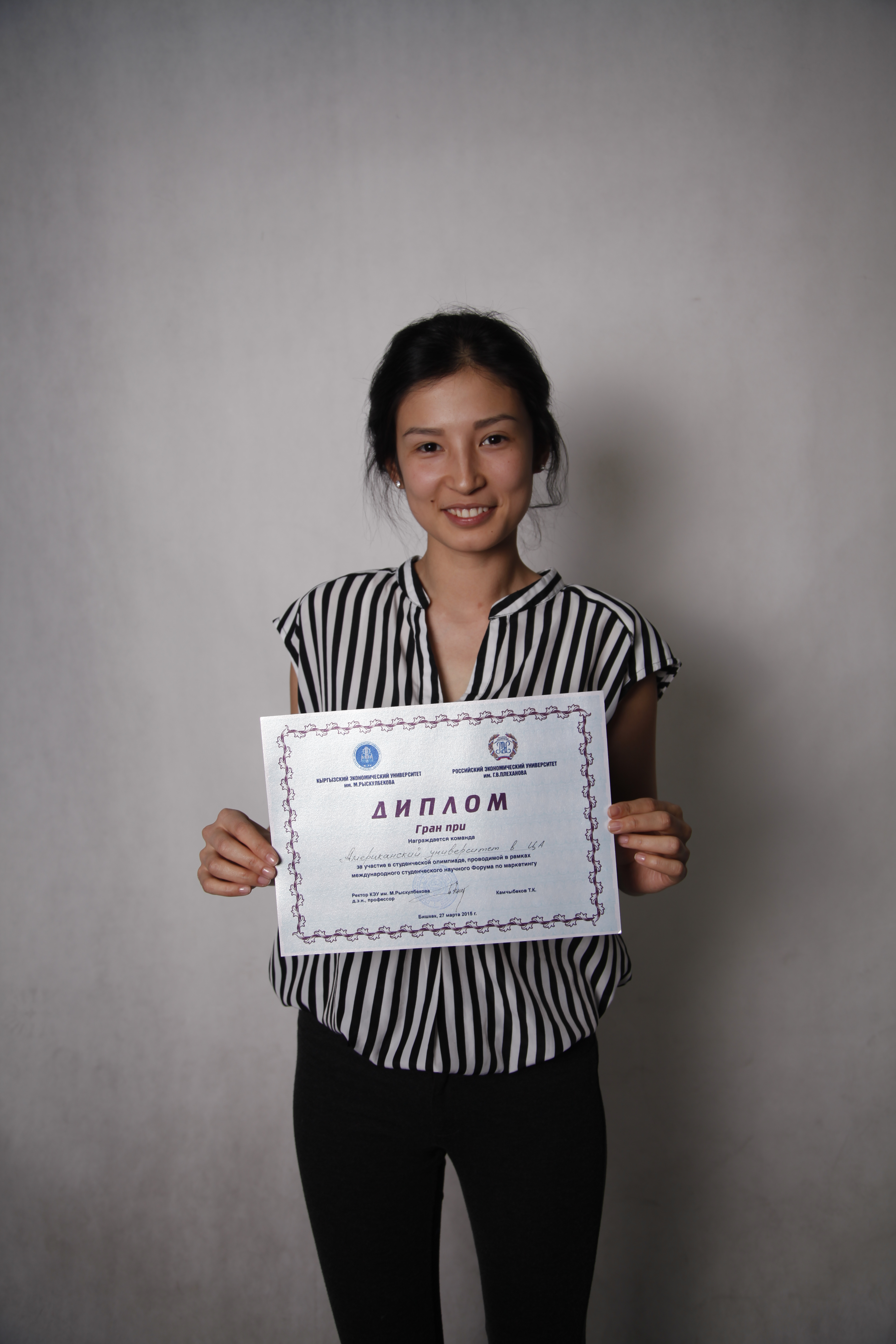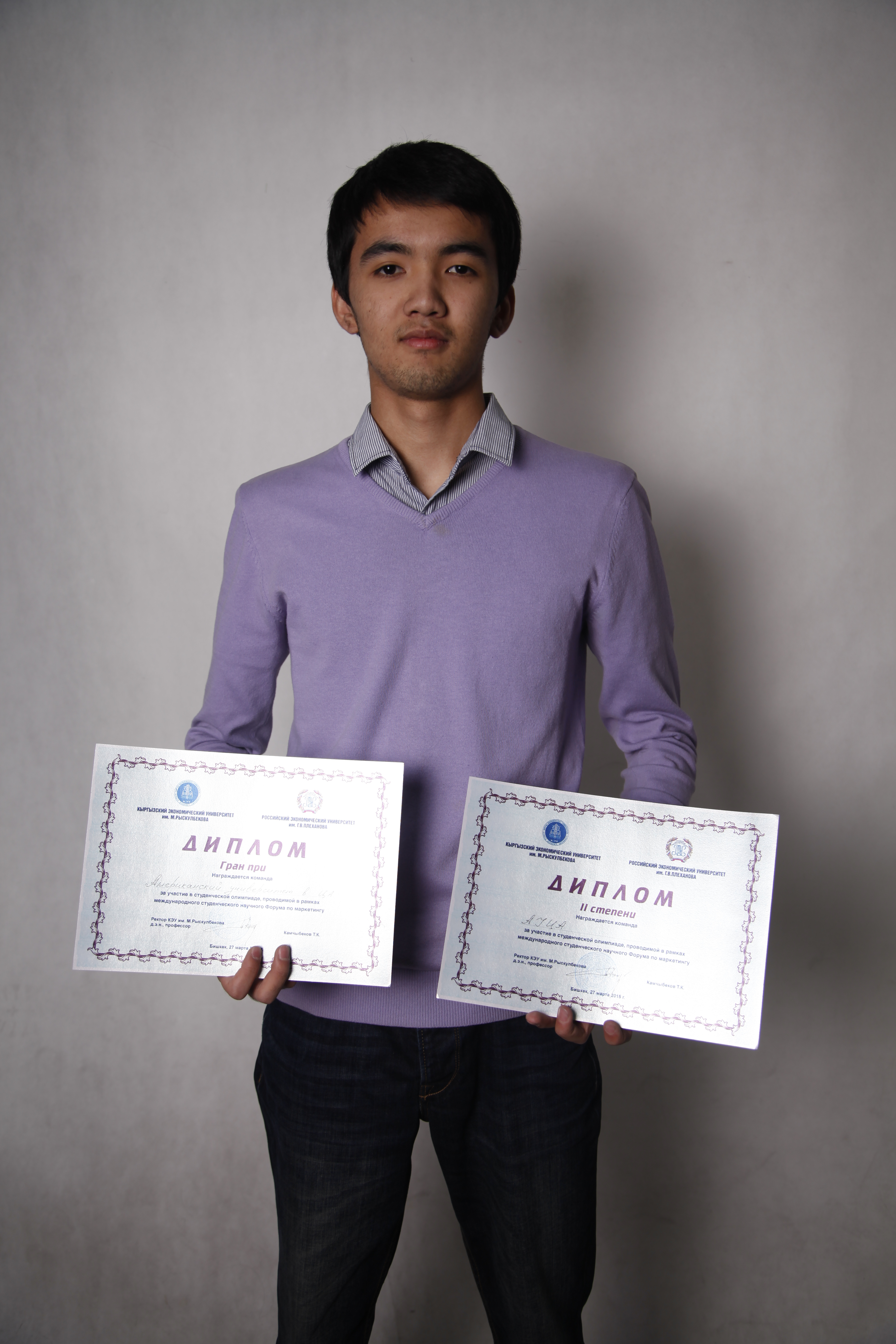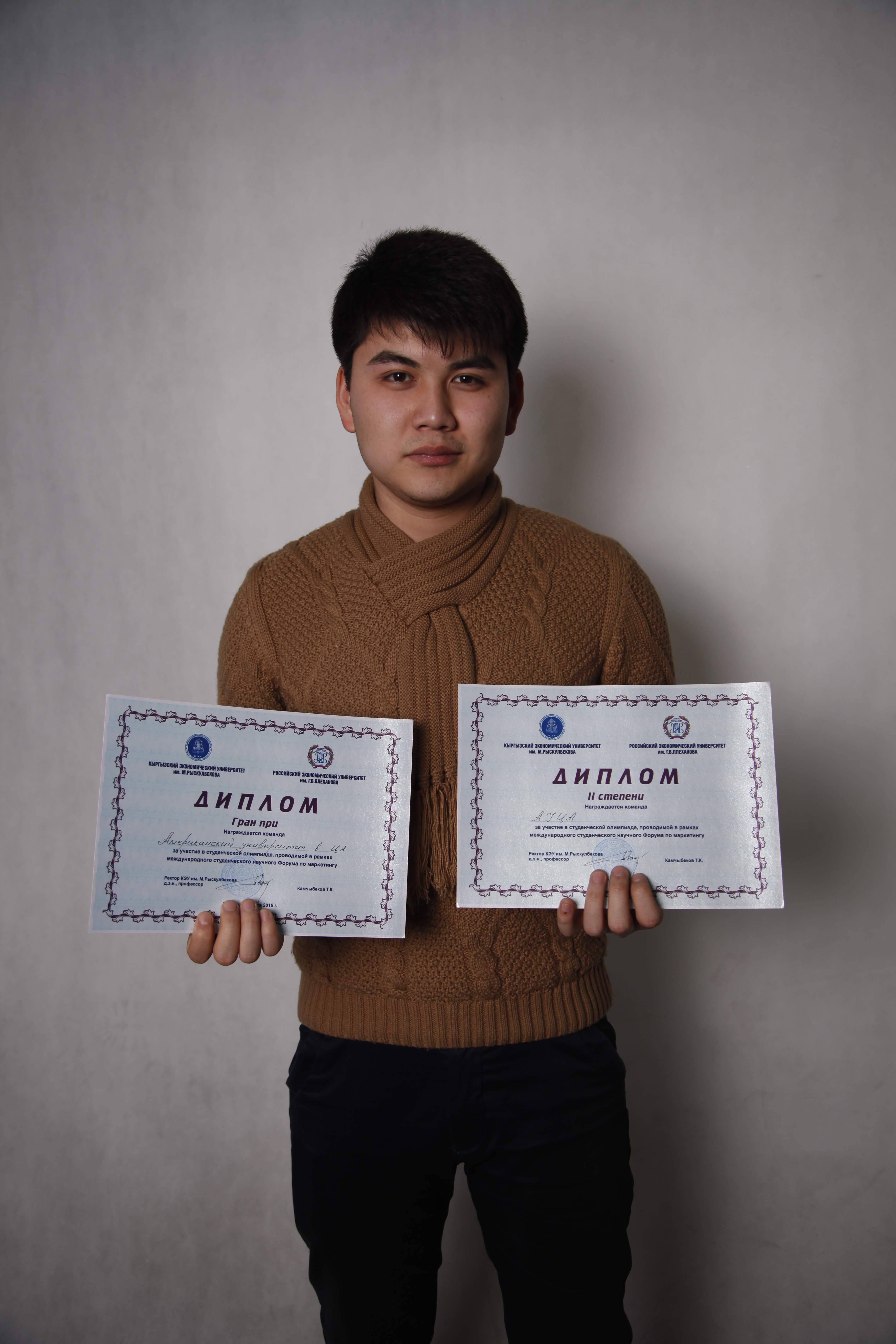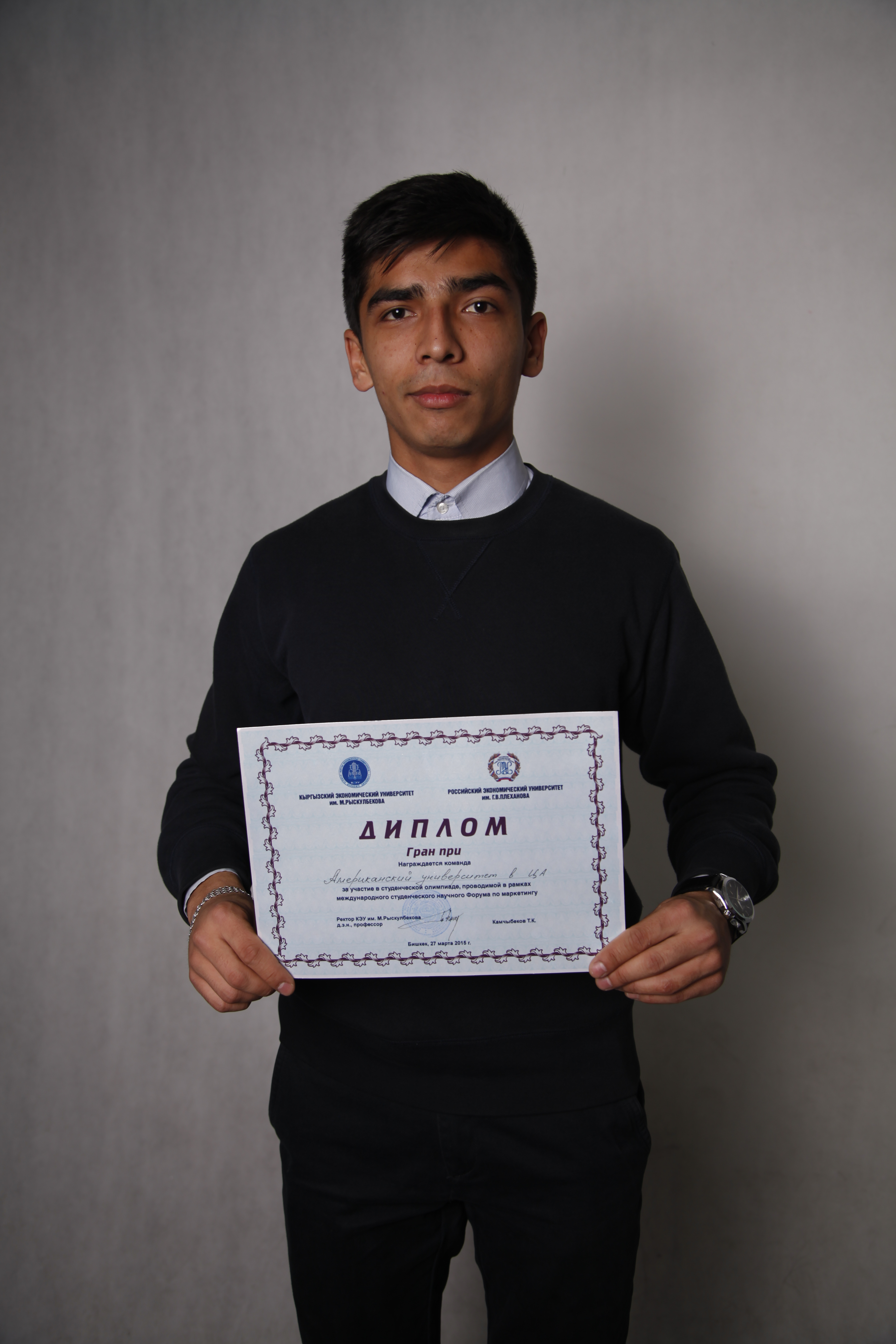Мы к этой олимпиаде подошли с полной ответственностью, наша команда понимала, что на нас будут смотреть все, как и на вторую команду и на самом деле так и было, когда мы вышли презентовать свою исследовательскую работу, то мы заметили, как все смотрели на нас молча, в то время как на другие команды так пристально никто не смотрел. Основным тревожным моментом для нас было, когда начали объявлять призеров олимпиады, и это было самым волнительным моментом, особенно когда объявляли гран-при. Про себя мы думали, что скорее всего организаторы отдали это место КЭУ, но в душе мы верили, что это будет команда АУЦА. Так и было, радость и эмоции переполняло каждого члена команды АУЦА, ведь мы всем сердцем болеем друг за друга.