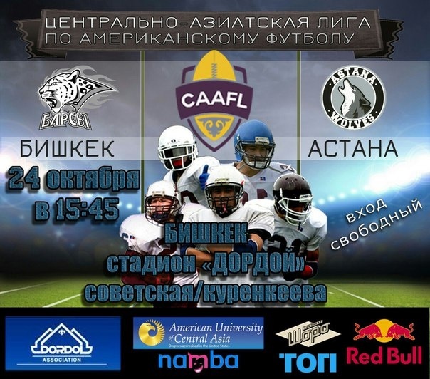 24 октября 2015 года в 15.45 на стадионе «Дордой» состоится матч по американскому футболу между командами «Барсы» г. Бишкек и «Волки» г. Астана. Игра является частью Центрально-азиатской лиги по американскому футболу.