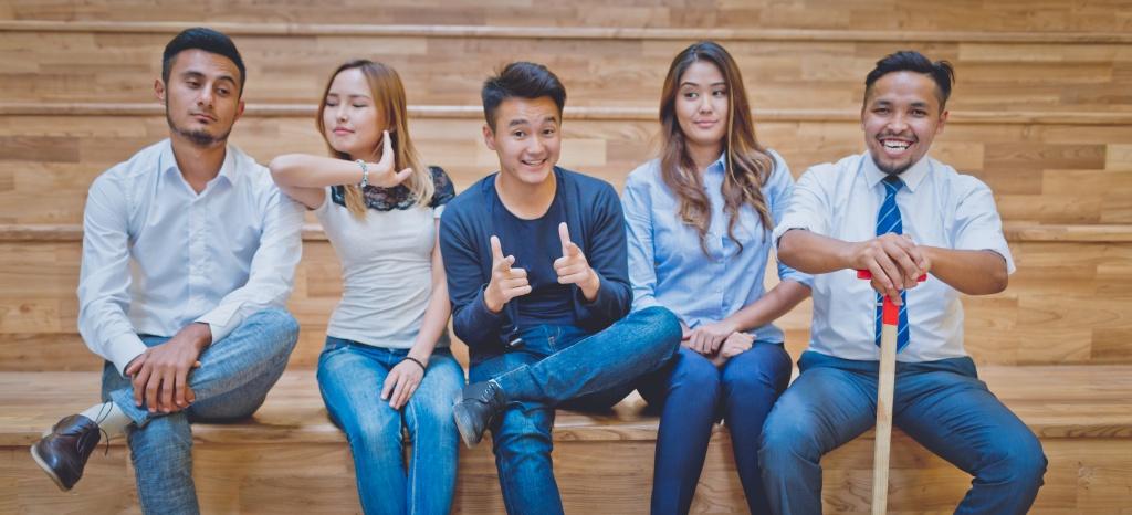 Отвечают почти хором, перебивая друг друга и смеясь. Молодые, классные, веселые, шумные, амбициозные, креативные. И в то же время умные, глубокие, думающие, качественные. Представим всю команду: это Адилет Дубаев (Адик), Сулайман Кулуев, Бахром Турсунов, Аэмилия Ыдырысова (Эми), Маржана Кадырова, Самат Дурусбеков, Азамат Уланов.