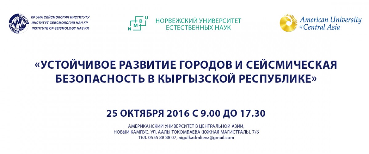 25 октября 2016 года в Американском университете в Центральной Азии (АУЦА) пройдет конференция, посвященная бурному развитию городов Кыргызстана и сейсмической безопасности инфраструктуры городов республики в связи с урбанизацией.