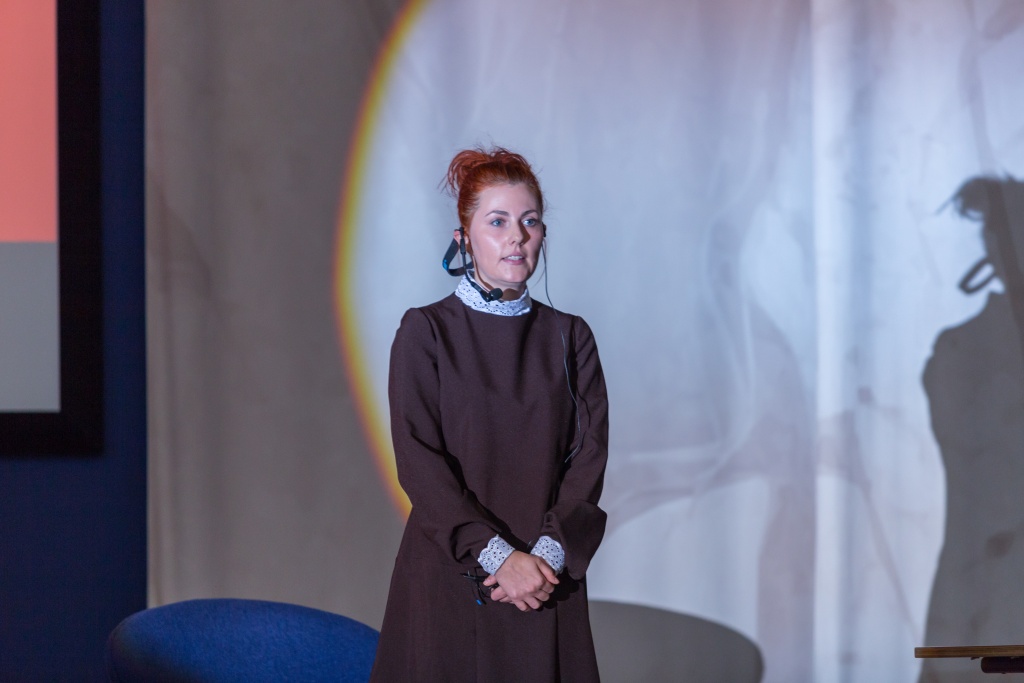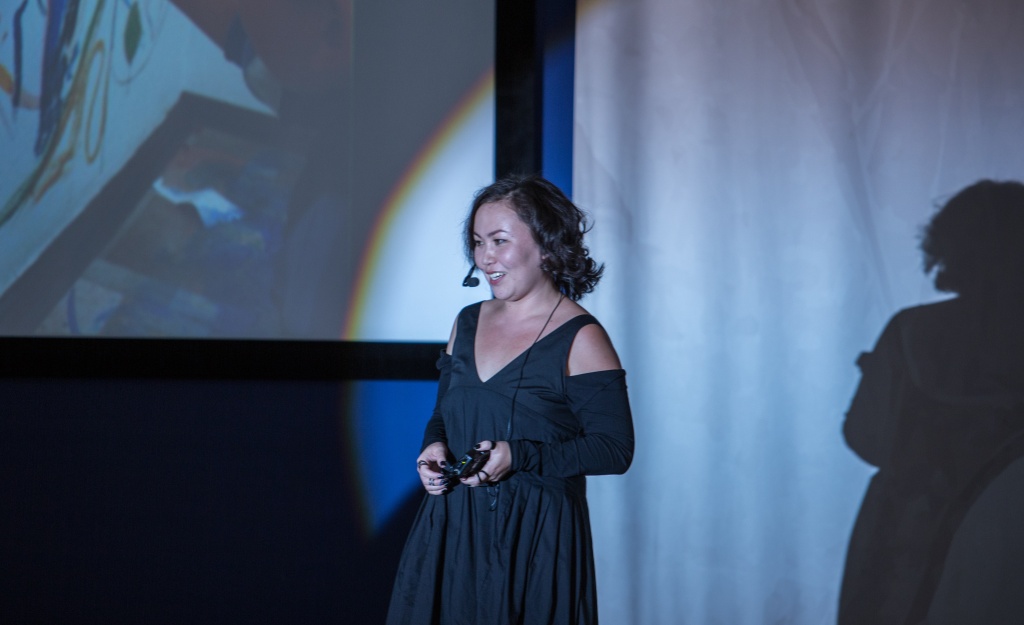 Выступление театра «Место Д…» заставило гостей TEDx задуматься о прошлом, настоящем и будущем города Бишкека. Актриса, своим выступлением рассказала о проблемах города, который покидают люди, несмотря на глубокую любовь к нему.