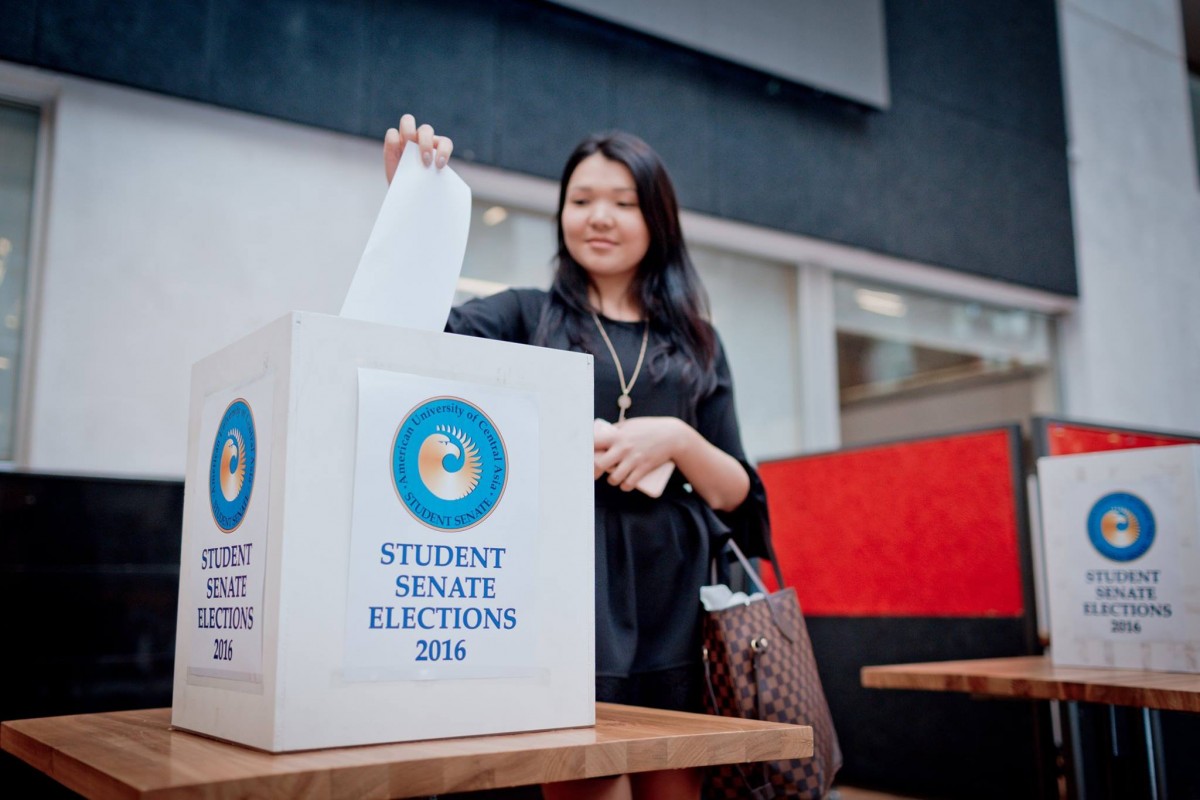 Сегодня, 16 ноября 2016 года, на церемонии посвящения в студенты Американского Университета в Центральной Азии (АУЦА) состоится церемония инаугурации студенческого сената АУЦА. Выборы сената прошли 3 ноября 2016 года, при завершении инаугурации следующие студенты начнут официально работать: