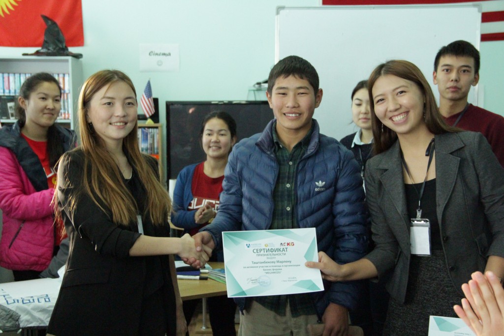 12 ноября 2016 года, студенты Американского Университета в Центральной Азии (АУЦА) провели бизнес-форум «МегаМозг» в городе Таласе. Однодневный форум для фермеров и школьников организовали Мэлисова Алтынай, Токтогулов Эрмек, Памиров Абай, Айтназарова Уулжан и Гулиза Алмазбекова.