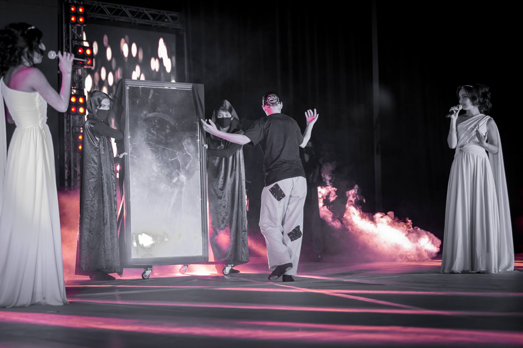 По завершении официальной части церемонии, гости вечера погрузились в новое шоу, наполненное самыми разными красками от театра АУЦА “Mirrors”. На этот раз, это была современная и весьма необычайная вариация пьесы «Пигмалион», известного драматурга Бернарда Шоу.