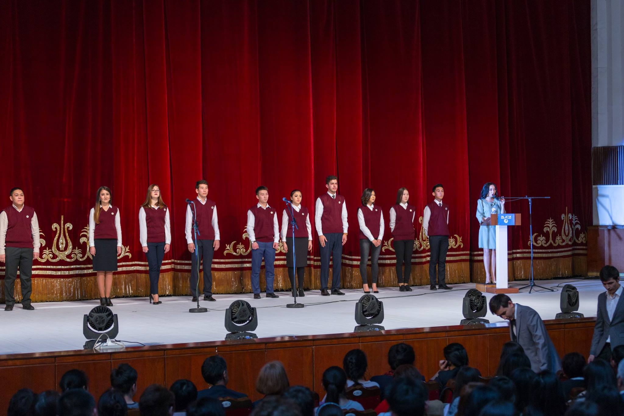 16 ноября 2016 года, в национальной филармонии им. Т. Сатылганова состоялась торжественная церемония посвящения в студенты Американского Университета в Центральной Азии (АУЦА). На официальной части, первокурсники поклялись быть достойными студентами, сохраняя дух и честь университета. Клятву произнесли не только студенты первого курса, но и новые члены студенческого сената.