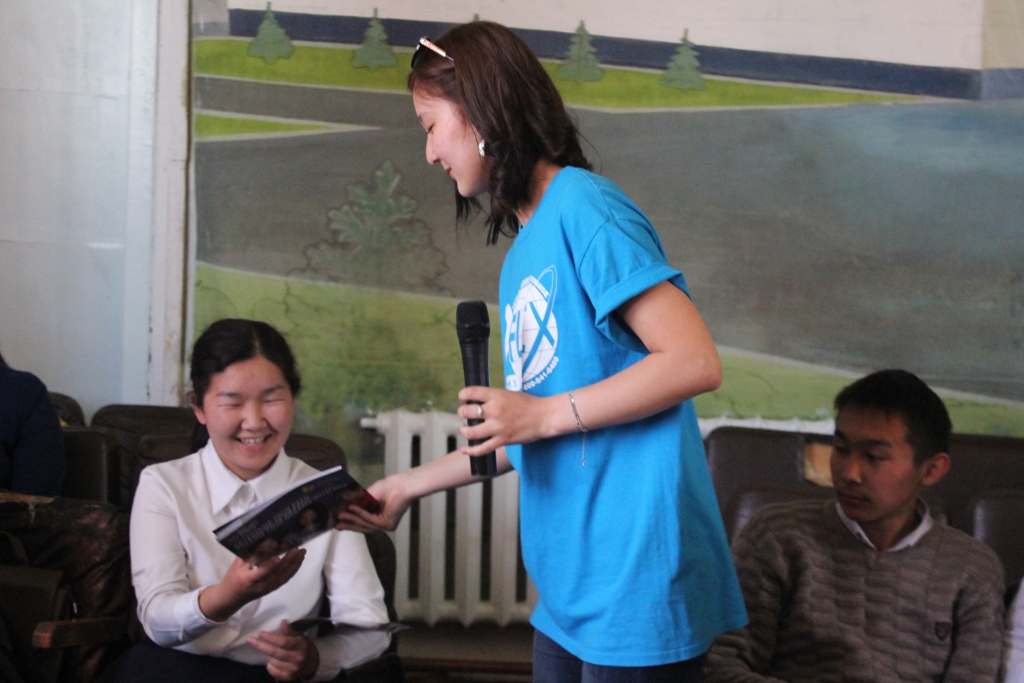 Важной частью встречи также были рассказы об учебе в Штатах. Я и мои со-организаторы, Гулзари Турсунова и Айдай Аманкулова, поделились опытом и впечатлениями об учебе в США, В добавок, мы рассказали о программе FLEX и дали им знать, что все эти программы спонсируются государственным департаментом США, что беспокоиться о финансовых моментах не стоит, а нужно лишь упорно готовиться и усердно учиться», - рассказала о поездке в Нарын, Мээрим Нурланбекова.