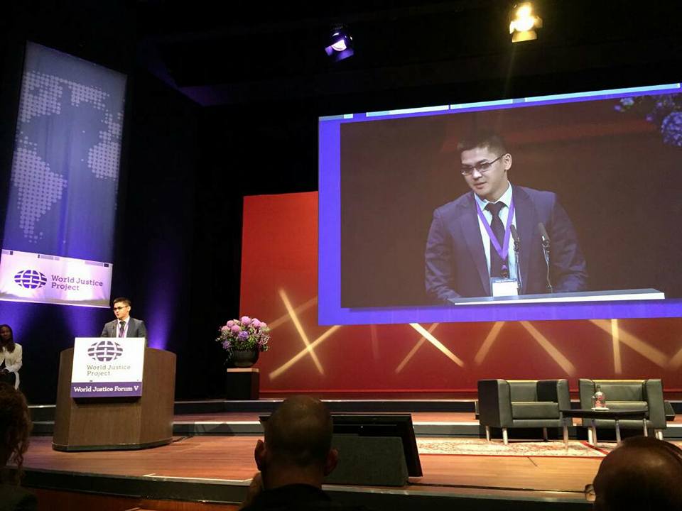 Форум проходил с 10 по 13 июля в Гааге, Нидерланды. В финале Эрмек презентовал проект по укреплению верховенства права в Кыргызстане. Помимо участников, в качестве спикеров на форуме выступали юристы с разных уголков мира, судьи Верховных судов и декан юридической школы Стэнфорда.