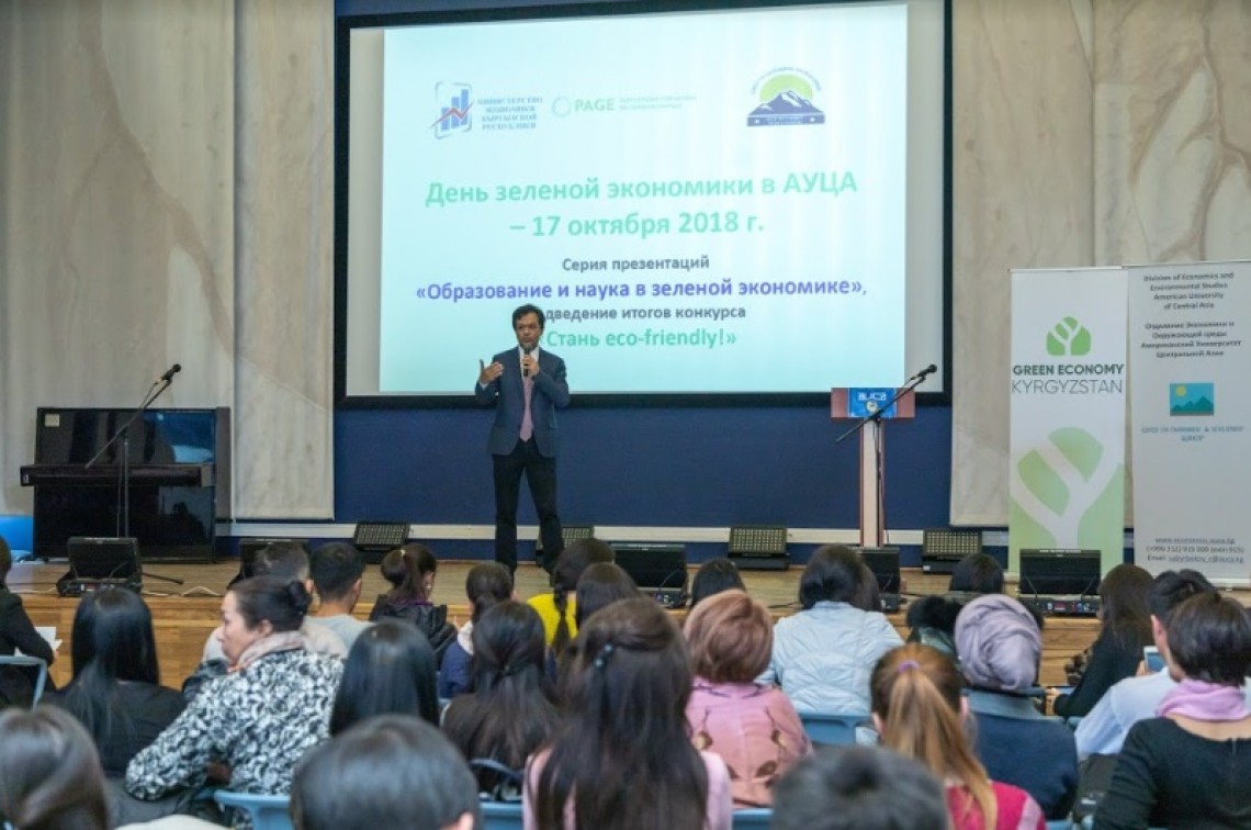 AУЦА также присоединился к данной инициативе и провел в кампусе сразу два мероприятия: однодневный семинар «Образование и наука в зеленой экономике и итоги экоконкурса среди студентов и школьников КР "Стань eco-friendly!". Мероприятия организовал Центр изучения окружающей среды и развития (ЦОР) АУЦА. В ходе семинара преподаватели и эксперты обменялись опытом по обучению студентов зеленой экономике.