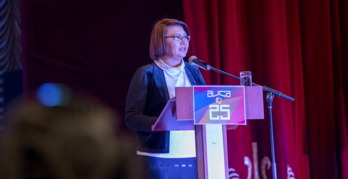«Сегодня Американскому университету в Центральной Азии исполняется 25 лет. За эти годы университет прошел большой путь развития от кыргызско-американского факультета до самостоятельной структуры — университета странового, а затем и регионального масштаба. Отрадно, что граждане Кыргызской Республики заслуженно воспринимают АУЦА как возможность получения качественного образования по новым стандартам и подходам», — сказала она, выступая 14 ноября на официальной части торжественной церемонии посвящения в студенты АУЦА первокурсников этого года.