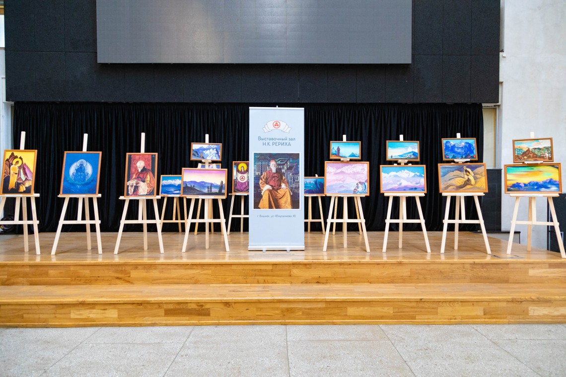 На форуме АУЦА проходит выставка репродукций картин Николая Константиновича Рериха, предоставленных Музеем Н. К. Рериха в Бишкеке.