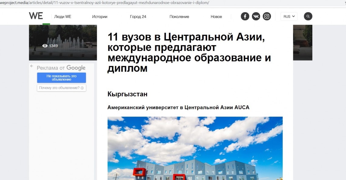 Казахстанский медиа-портал WEproject составил список вузов в Центральной Азии, которые предлагают международное образование и диплом. В список попали 11 университетов ЦА: 2 вуза Кыргызстана, 3 – Узбекистана, 6 – Казахстана.