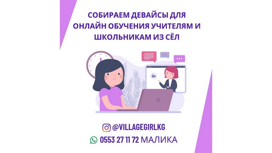 К сожалению, в это нелёгкое время не всем школьникам удаётся получить доступ к дистанционному образование, и эта проблема наиболее остро ощущается в регионах. Команда «Айылдык Кыз» собирает устройства для учителей и школьников, обучающихся в сёлах Кыргызстана.