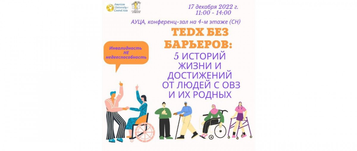 Кыргызстанцы с ограниченными возможностями здоровья и их родные выступят 17 декабря в АУЦА, чтобы рассказать со сцены в формате TEDx Talks о своей жизни и достижениях, вопреки мнению и скепсису окружающих, о силе духа и упорном труде, которые позволили им помочь сначала себе, а потом и другим людям. Мероприятие проходит под девизами: «Всегда говори в жизни «ДА!» и «Инвалидность – НЕ недееспособность».