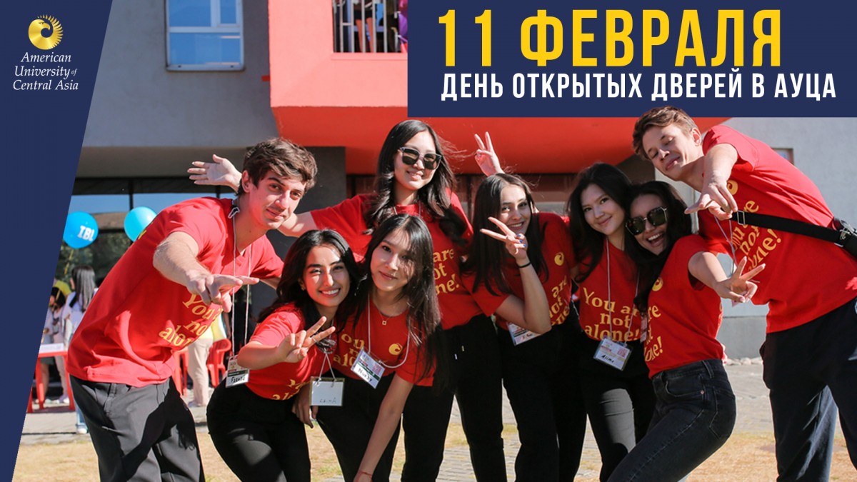 Американский университет в Центральной Азии приглашает всех абитуриентов и их родителей на День открытых дверей, который состоится в субботу, 11 февраля 2023 года в 12:00 в кампусе АУЦА.
