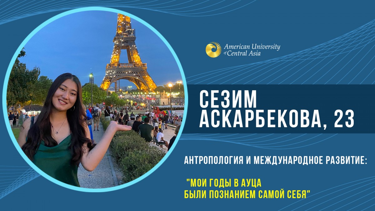 Меня зовут Сезим Аскарбекова, я окончила АУЦА в 2023 году, изучала антропологию и международное развитие. Мои студенческие годы были продуктивными и преобразующими с точки зрения моего академического и личностного развития.