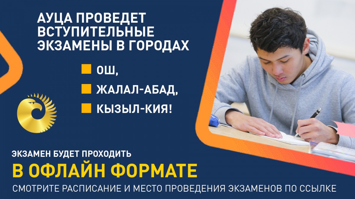 Американский университет в Центральной Азии объявляет о проведении выездных вступительных экзаменов на программу бакалавриат в городах Оше, Жалал-Абаде и Кызыл-Кие.