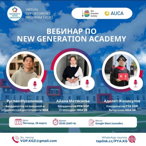 Progresive Youth Association (PYA) приглашает Вас на вебинар про стипендиальную программу @NGA_AUCA с: