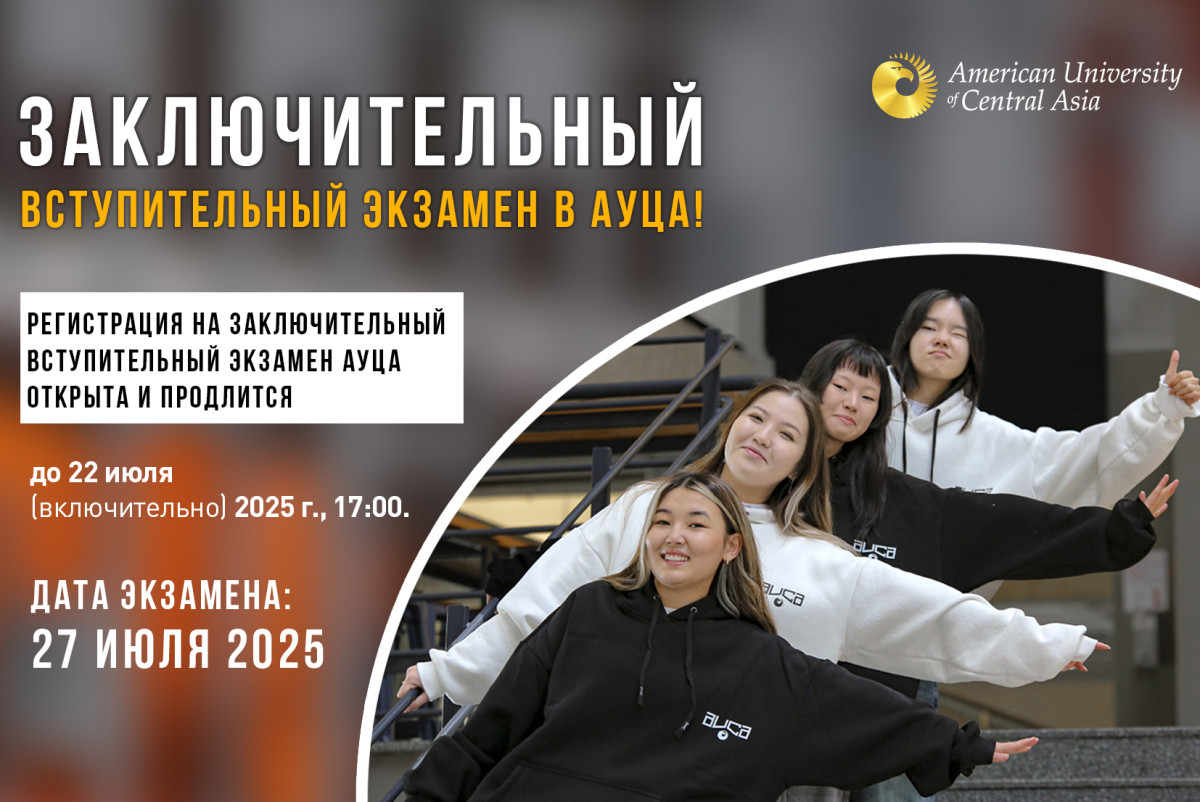 Регистрация на заключительный вступительный экзамен АУЦА открыта и продлится до 22 июля (включительно) 2025 г., 17:00.