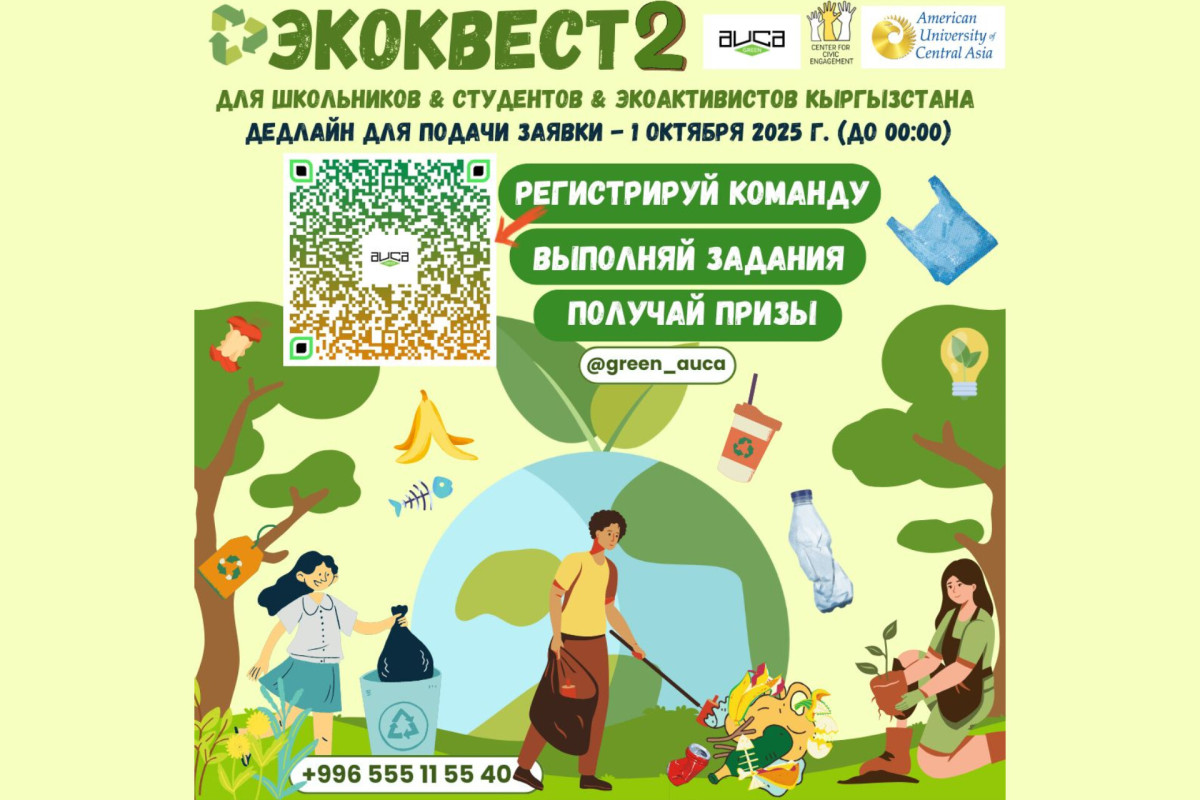 Дополнительная информация по тел.: +996 555 11 55 40 (звонить и W/A), Маргарита Лазуткина, координатор программы «Зеленый АУЦА», координатор экоквеста