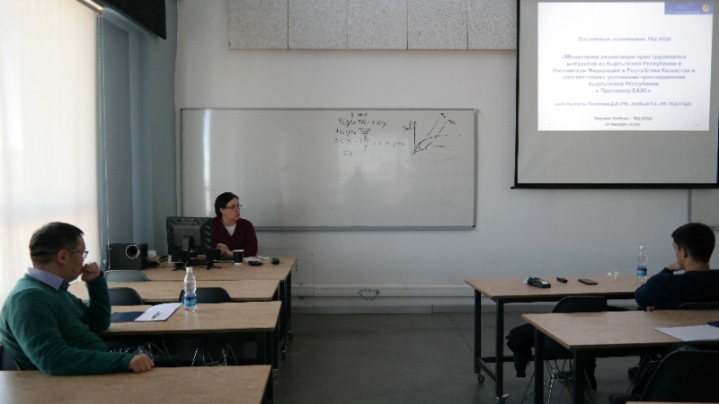 В декабре 2018 г. Тянь-Шанский аналитический центр (ТАЦ) АУЦА презентовал итоги своего двухгодичного исследования по трудовой миграции из Кыргызстана в России и Казахстане за 2017-2018 гг. Исследование было посвящено мониторингу соблюдения прав трудящихся мигрантов из Кыргызстана в России и Казахстане по истечении трех лет членства нашей страны в ЕАЭС.